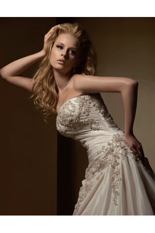 Stáhla ze zrcadla plátno a já se na sebe konečně mohla podívat. Mé husté, ohnivě rudé vlasy (pozn. k odkazu: bohužel se mi nepodařilo sehnat obrázek s ideálním účesem a barvou vlasů zároveň, takže si, prosím, představte ty vlasy rudé) byly zčásti vyčesané nahoru a poté splývaly v plných vlnách dolů, až na má ramena. Zeleno-karmínové oči mi rámovaly husté řasy a byly zvýrazněny očními linkami. Zatímco jsem si prohlížela tu mistrovskou práci, kterou Nina odvedla, došla do pokoje pro šaty a v tichosti jsem si je oblékla. Pak se sehnula ke krabici u mých noh a vyndala z ní nádherné boty.